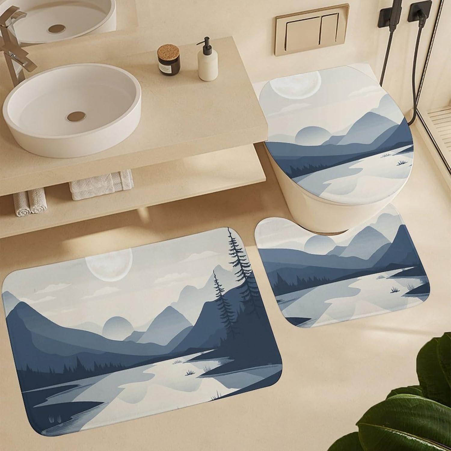PACKAGE INCLUDE1PC ×Shower Curtain1PC ×Bath Mat1PC × Toilet Seat Cover1PC × U-Shaped Contour Pads12PCS × Plastic HooksWaterproof Polyester FabricThe shower curtain is made of high-quality smooth polyester fabric, which has a strong waterproof effect and the water droplets fall like pearls.Preventing bath water splashingBathroom 4 Piece Set is made of high quality pragmatic polyester fabric and ultimate waterproof coating technology, healthy, comfortable, skin-friendly, pragmaticand waterproof.Machine WashableMachine wash in cold water or hand wash, easy to clean, fast drying and colorfast. Greatly reduce your housework. Please do not bleach! Please do not expose to sunlight!Care instructions.Machine wash in cold water or hand wash,do not bleach,iron at low temperature.Customer service.24 Hours customer support.